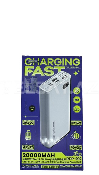 REMAX RPP-292, geniş batareya kapasitesi və sürətli Şarj imkanları ilə diqqəti cəlb edən bir güc bankasıdır. 20000mAh batareya kapasitesi, cihazlarınızı uzun müddət boyu effektiv şəkildə şarj etməyə və enerji təmin etməyə kömək edir.